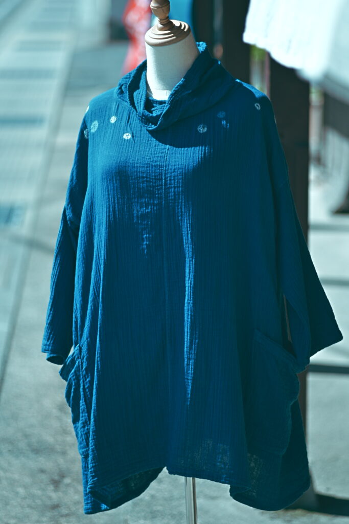 秋も天然藍染が映える季節です。自然の美を纏いながら紅葉とのコントラストなどが楽しめます。